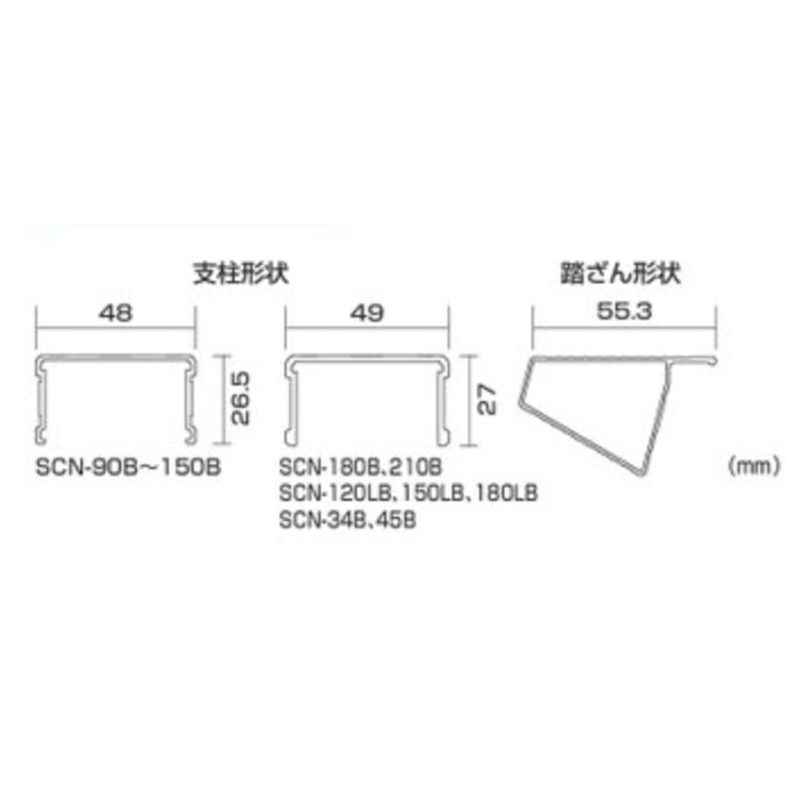 | 型 式 | 天板の高さm | はしごの長さm | 設置寸法mm | 保管収納寸法mm | 質量㎏ | 価格 | 税込価格 | |||