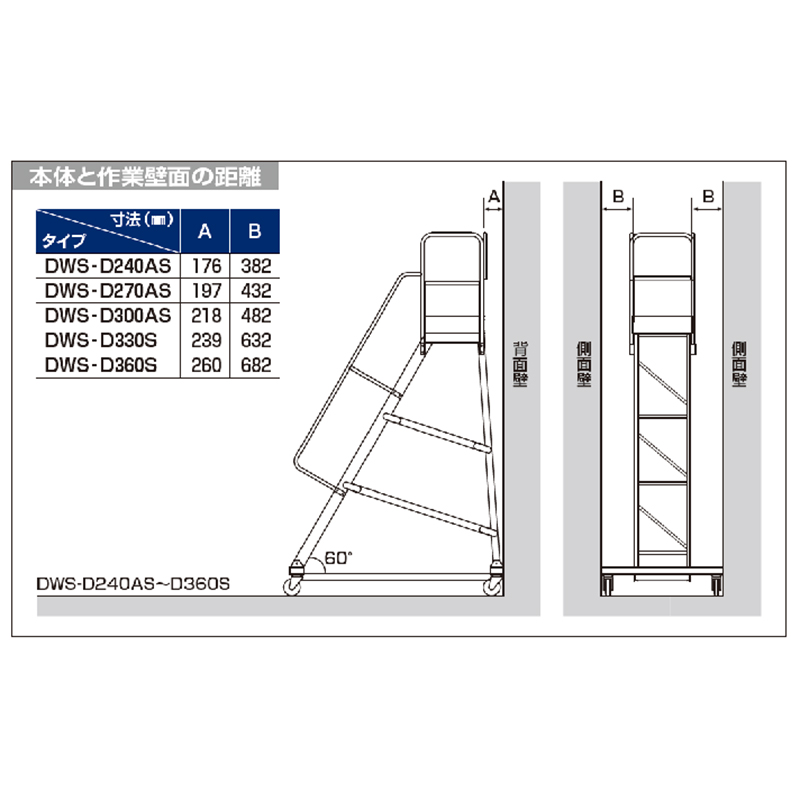 法規により、必ず階段両手すり天板三方を付けてお使いください (労働安全衛生規則)