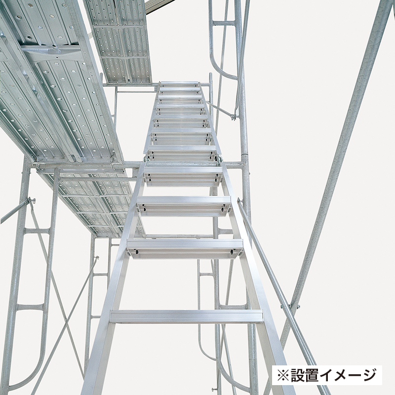| 型式 | 正面幅mm | 踏板の幅mm | 段数 | 蹴上げ寸法(h)mm | 適用足場寸法mm | 質量㎏ | |