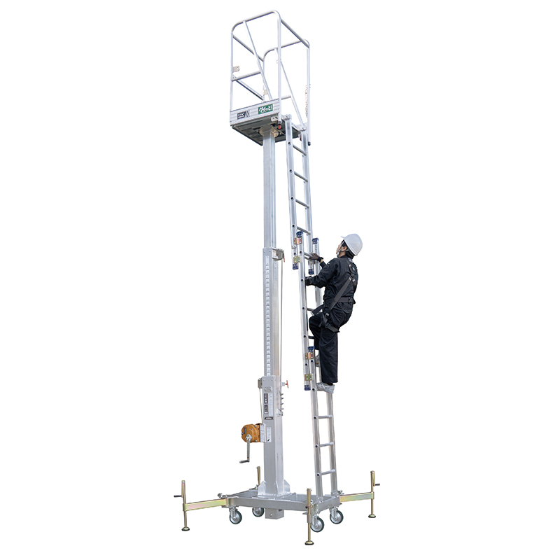 ●作業床寸法(mm):600×600 ●乗員数:1人(130kg) 手すり高さ:1100mm