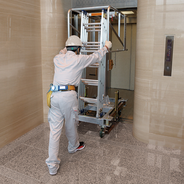 乗り込めます。また、はしご部分が作業床の外側に設置してあるため、